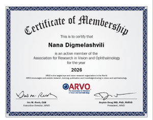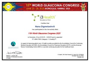 July 2008–present — ophthalmologist certificate from the Department of Labour, Health, and Social Protection of Georgia, Tbilisi