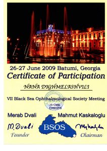 July 2008–present — ophthalmologist certificate from the Department of Labour, Health, and Social Protection of Georgia, Tbilisi