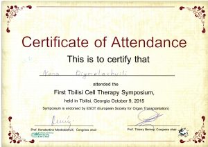 October 2015 — First Tbilisi Cellular Therapy Symposium, European Society for Organ Transplantation, Tbilisi
