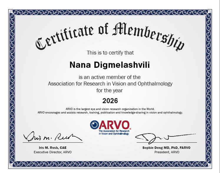 Апрель 2008 – Июнь 2011 – Офтальмолог и учёный «Грузинского Национального Центра Офтальмологов и Неврологов», Тбилиси